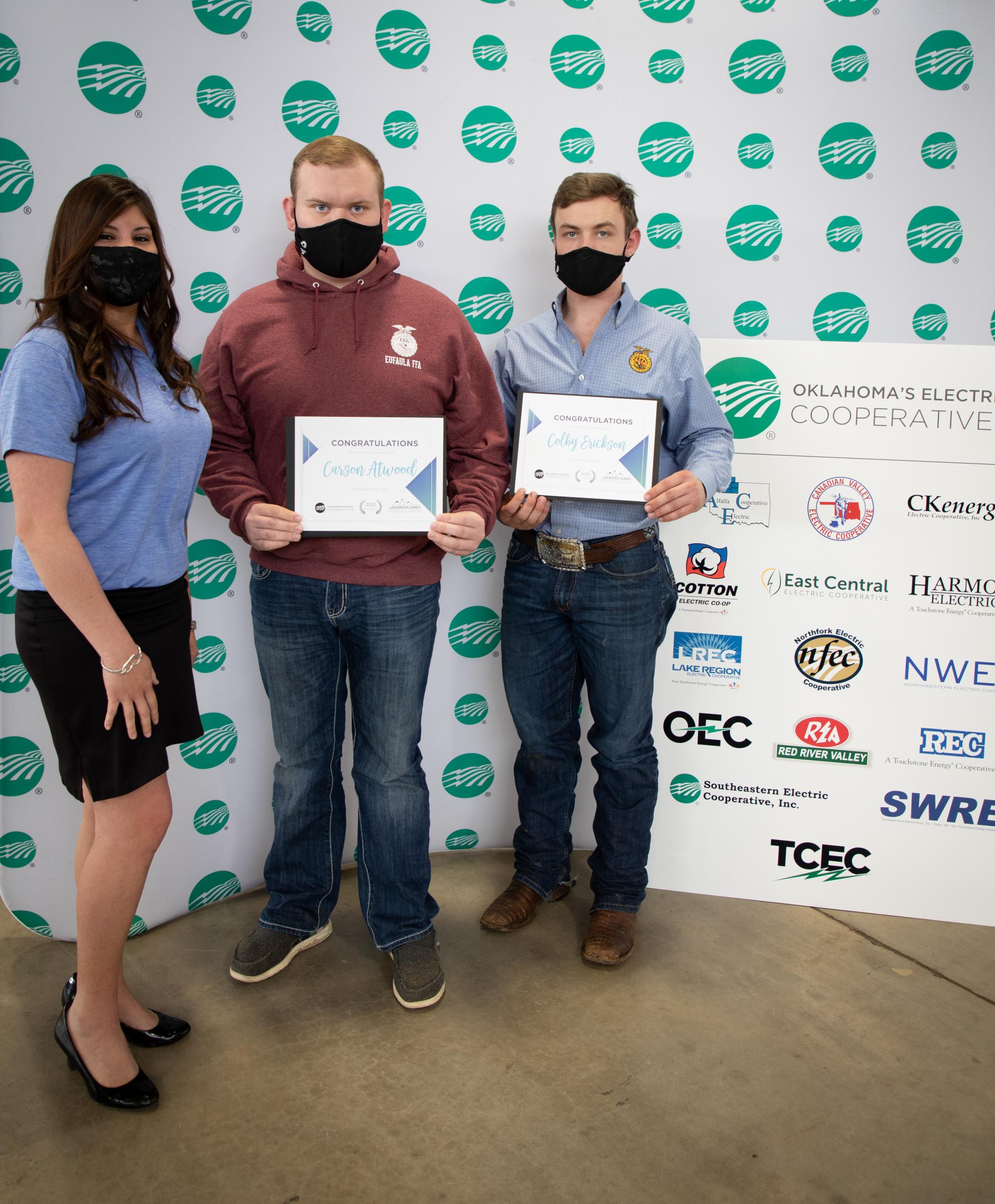 Shown pictured L-R: MR/PR Manager Katherine Russell, Eufaula FFA student Carson Atwood and Haskell FFA student Colby Erickson.